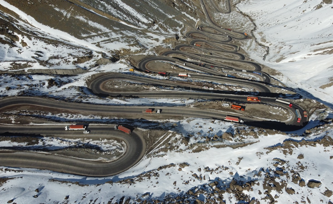 Estrada Los Caracoles: é um trecho montanhoso da rodovia internacional que sobe até mais de 3.000 metros de altitude, com cerca de 29 curvas extremamente fechadas em sequência. Essa estrada é vital para o comércio e turismo entre o Chile e a Argentina, sendo a principal rota terrestre entre Santiago e Mendoza. Oficialmente parte da Ruta CH-60, é uma das estradas mais impressionantes — e temidas — da América do Sul. Localizada na fronteira entre o Chile e a Argentina, ela liga a cidade chilena de Los Andes ao Paso Los Libertadores, na Cordilheira dos Andes. Seu nome vem das inúmeras curvas fechadas e em zigue-zague, que lembram o formato de uma espiral ou caracol.