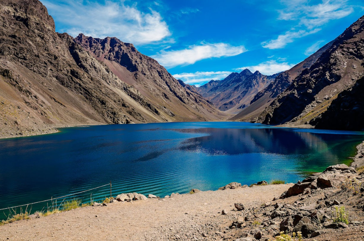 É uma lagoa glacial andina situada no Valle del Aconcagua, formada por águas do degelo da neve. A profundidade média é de 50 metros, e suas cores variam entre o azul profundo e o verde-esmeralda, dependendo da luz e da estação do ano. A paisagem ao redor, com montanhas nevadas refletidas na água, cria um cenário de cartão-postal.