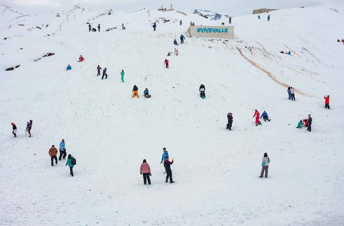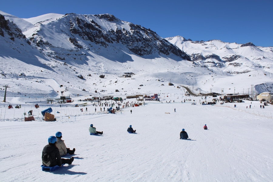 Farellones é tipo o “primo descolado”: é mais acessível, cheio de atividades e por isso é a parte divertida da história! Tem parque de neve, tobogã, tirolesa, boia maluca, pistas de ski, porém não chega a ser profissional. É onde o povo vai pra BRINCAR na neve mesmo, com preço mais amigo e aquele astral bem família brasileira em festa de fim de ano, sabe?