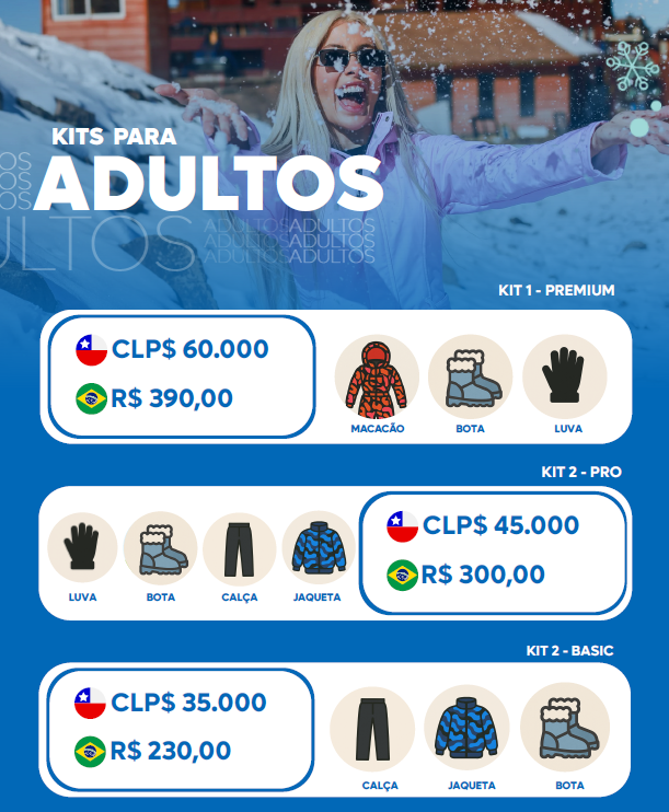 Tem de tudo: calça, jaqueta, bota, luva, macacão… tu escolhe o look perfeito que vai querer alugar e já sai pronta pro frio real oficial! Ah, e também tem foodtruck por lá, então quem quiser já pode aproveitar pra tomar um café da manhã reforçado (não tá incluso no valor do passeio, tá? Então já leva uns pesos trocados!).
