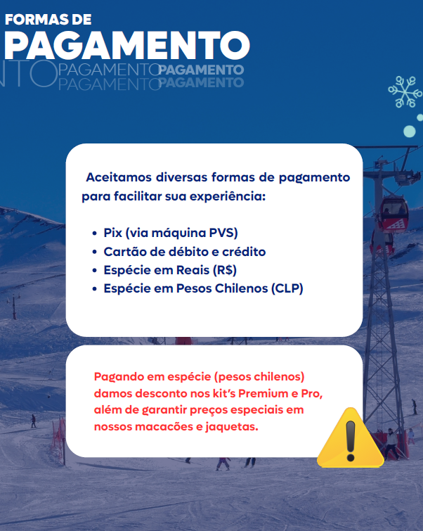 Aqui é onde tu vai alugar a roupa impermeável pra brincar na neve sem virar picolé humano.
